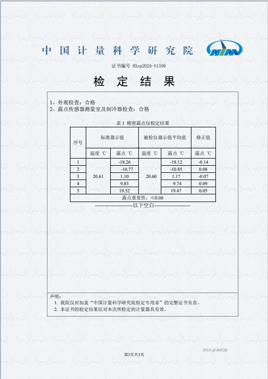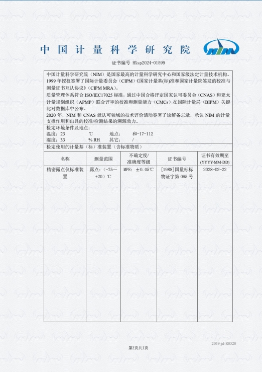 冷鏡式露點儀(-20-95℃)檢定證書 2024-6-17 本文被閱讀 8072 次