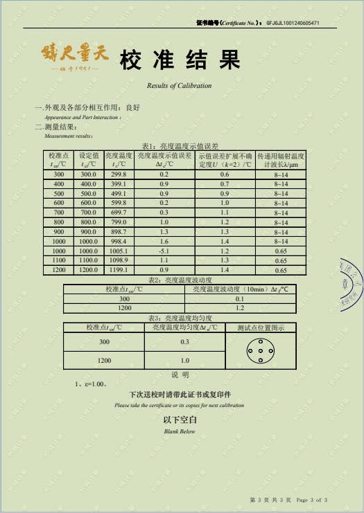 | 上一條:冷鏡式露點(diǎn)儀(-20-95℃)檢定證書(shū) | 下一條:高精度數(shù)字溫度計(jì)-校準(zhǔn)證書(shū) |