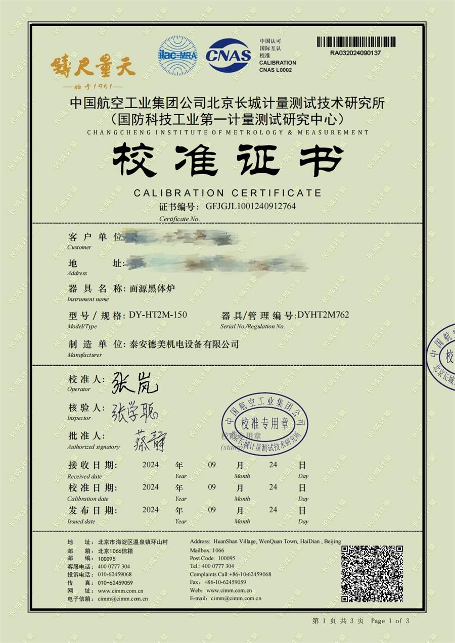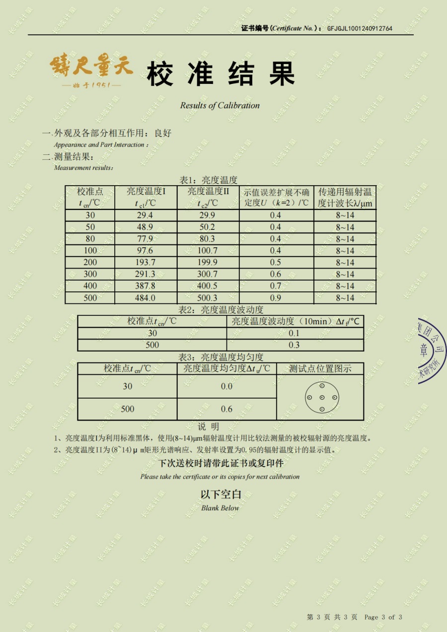 | 上一條:黑體輻射源(50-700℃)校準(zhǔn)證書(shū) | 下一條:高精度數(shù)字溫度計(jì)-校準(zhǔn)證書(shū) |