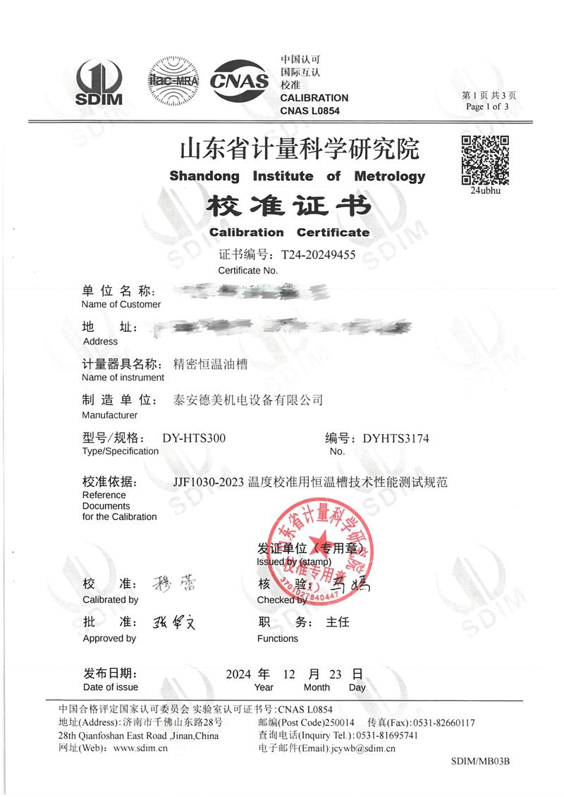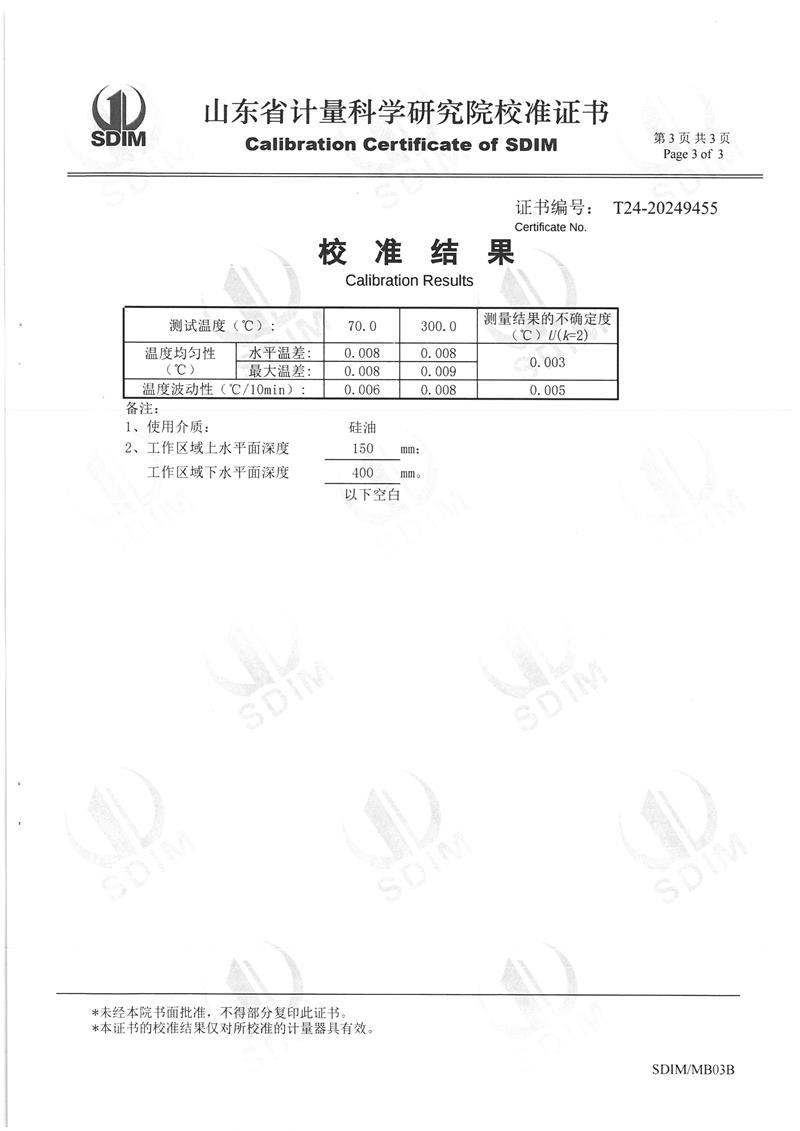 油槽(70~300℃)校準(zhǔn)證書 2024-12-26 本文被閱讀 8212 次