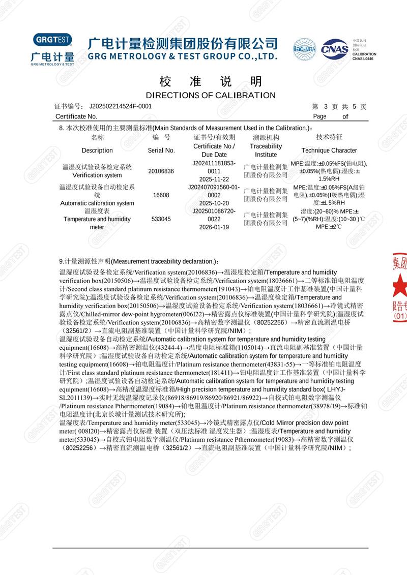 溫濕度檢定箱18279(-5~65℃)校準證書 2025-4-18 本文被閱讀 4492 次
