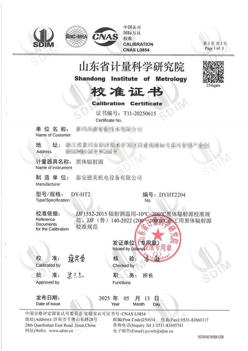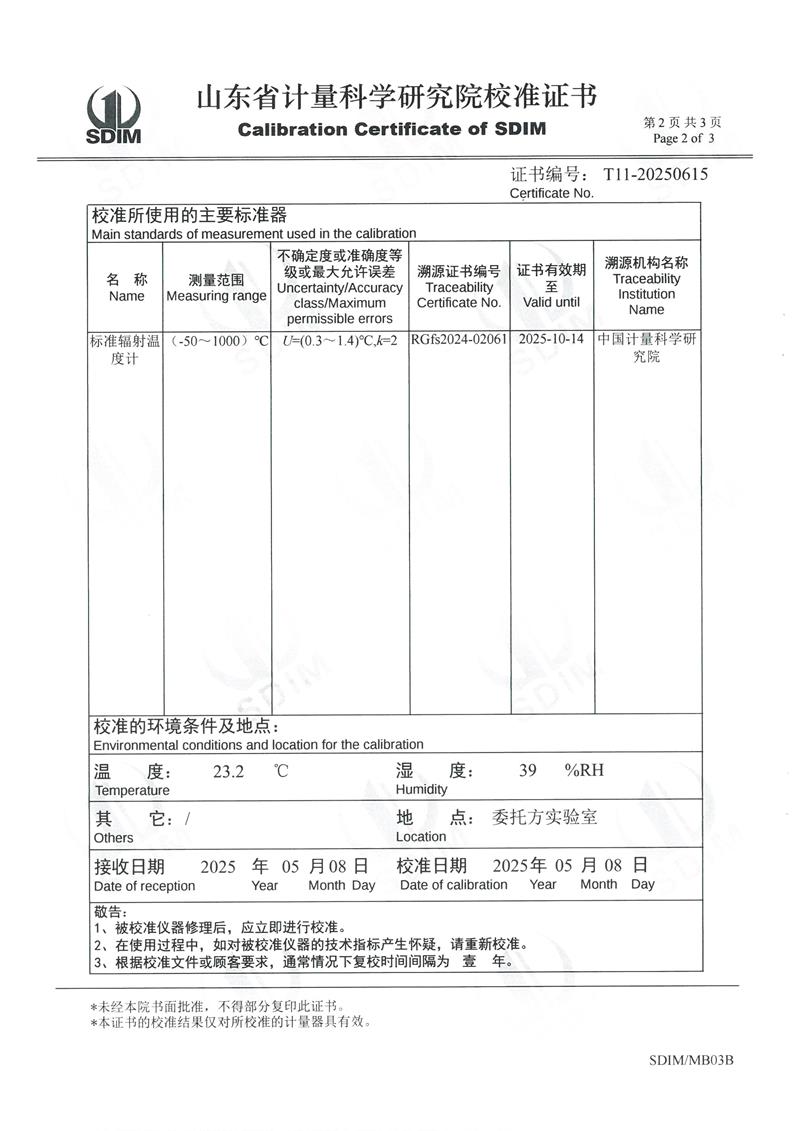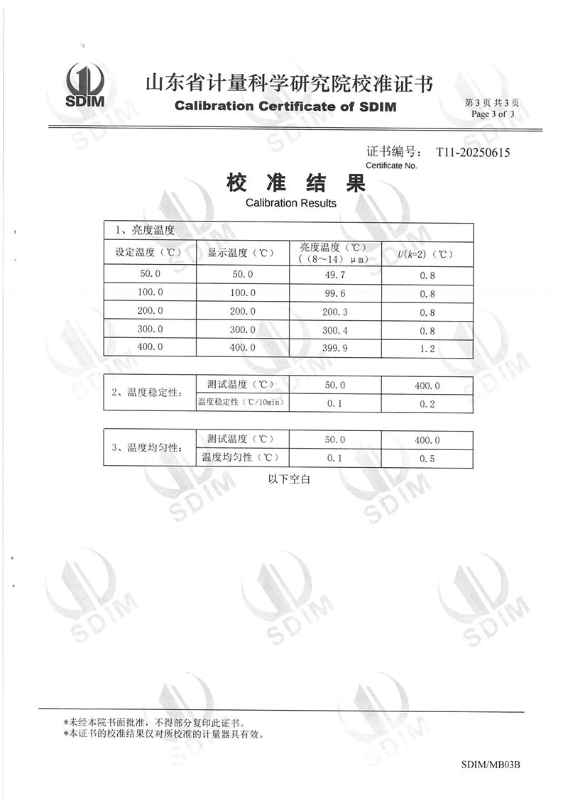 黑體爐(50~400℃)校準證書 2025-5-16 本文被閱讀 4673 次
