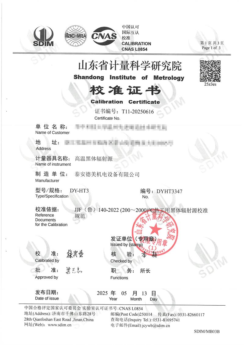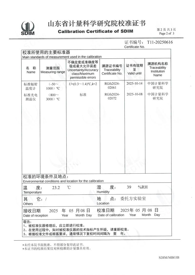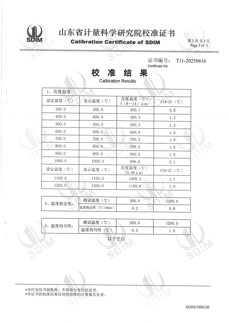 高溫黑體爐(300~1200℃)校準(zhǔn)證書 2025-5-16 本文被閱讀 4835 次