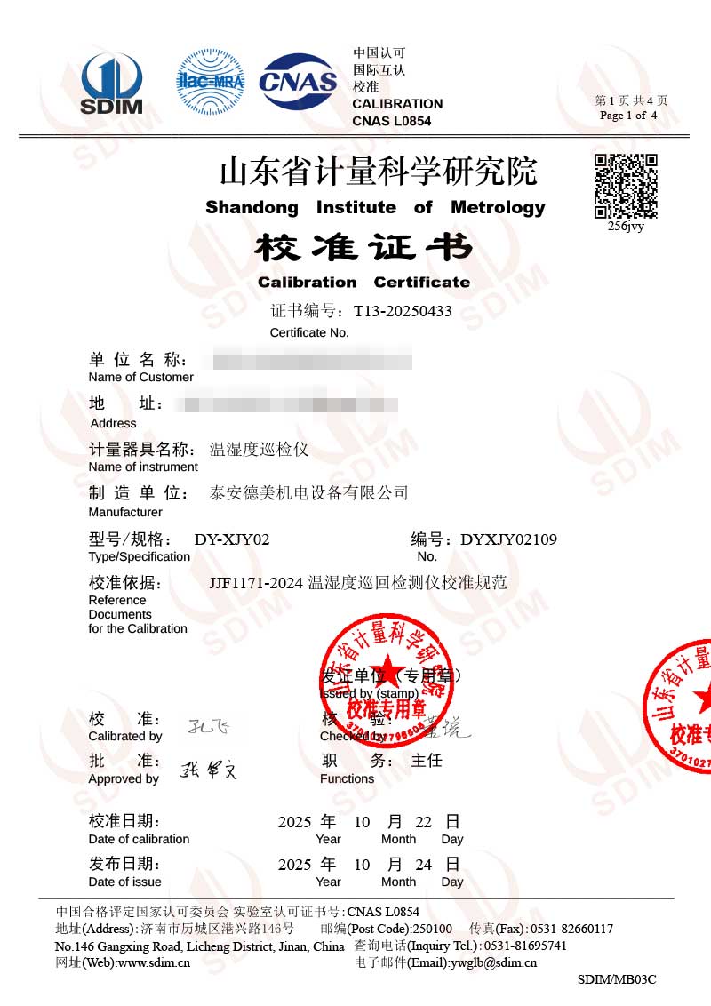 溫濕度巡檢儀校準(zhǔn)證書 2025-10-30 本文被閱讀 2111 次