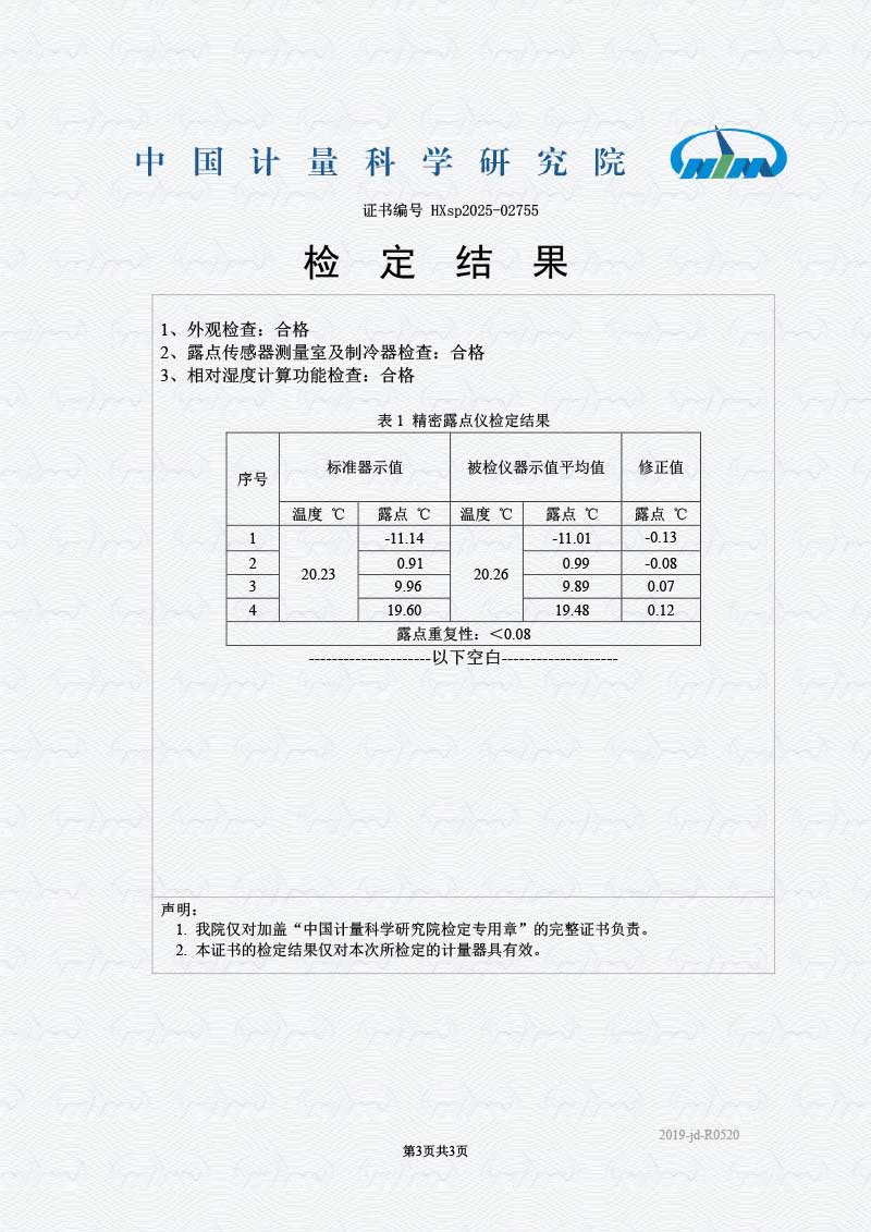 露點(diǎn)儀檢定證書