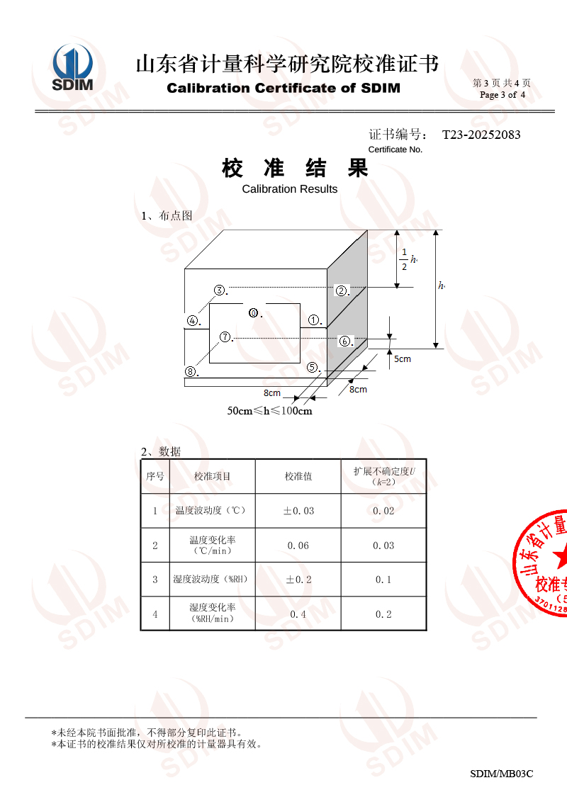 溫濕度檢定箱校準證書