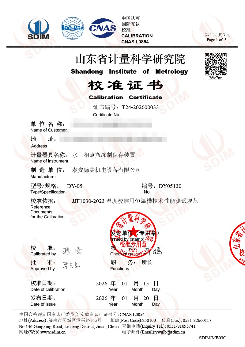 水三相點瓶凍制保存裝置-校準證書 2026-1-26 本文被閱讀 1429 次