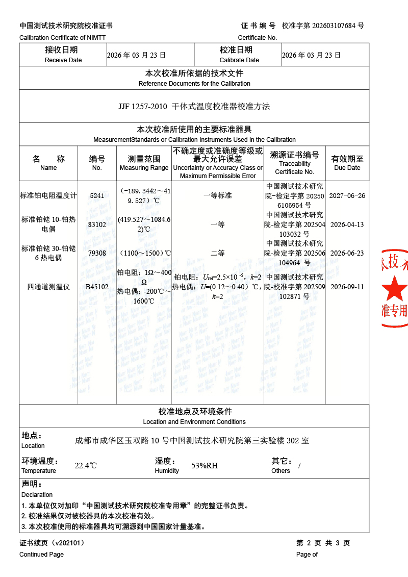高溫干體爐-校準(zhǔn)證書 2026-3-25 本文被閱讀 596 次