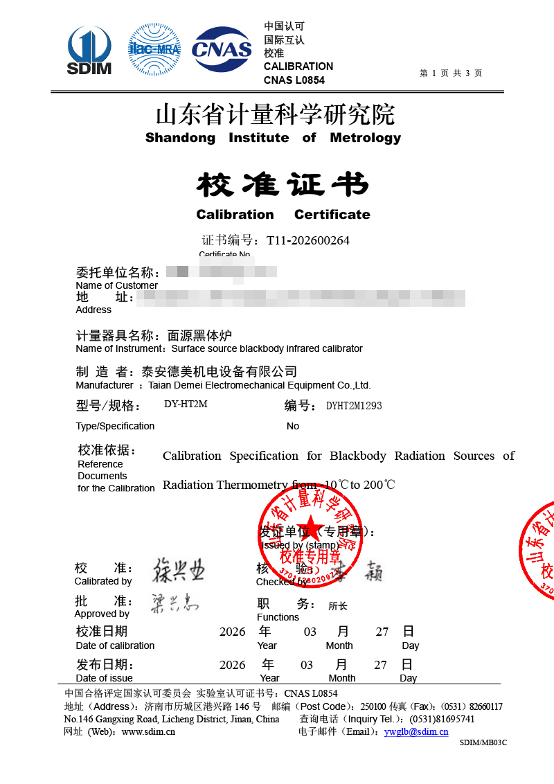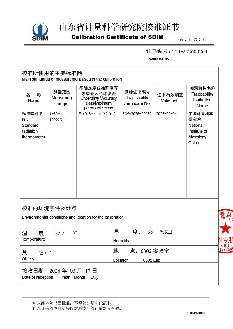 面源黑體爐-校準證書 2026-4-7 本文被閱讀 775 次