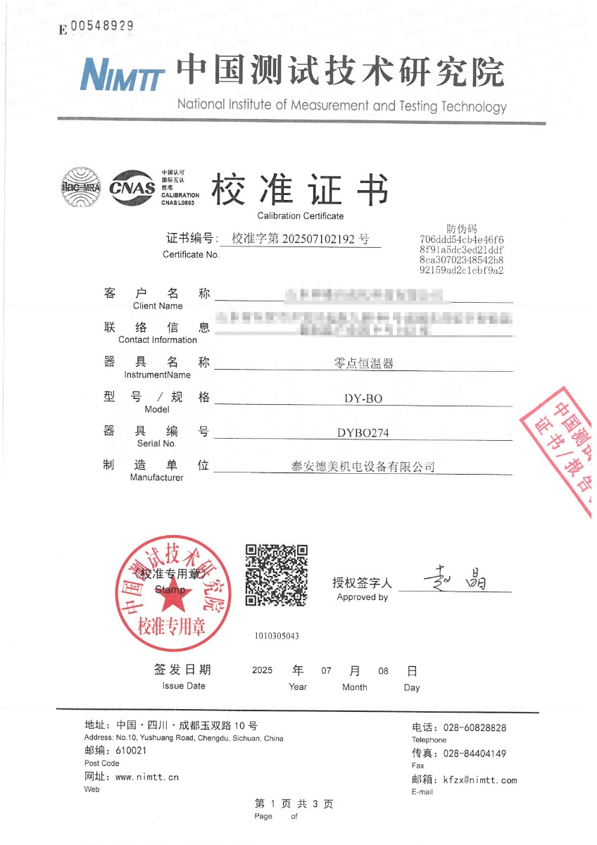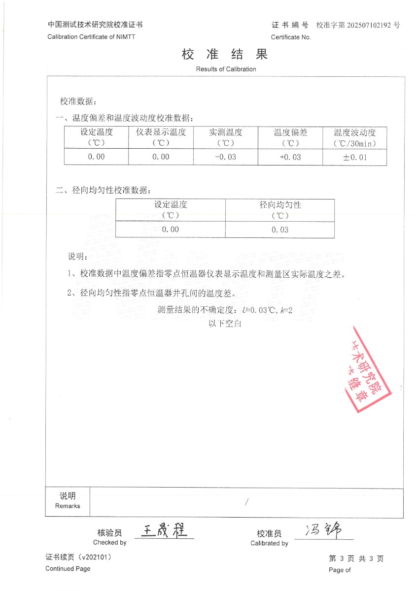 零點恒溫器校準證書 2025-7-10 本文被閱讀 4104 次