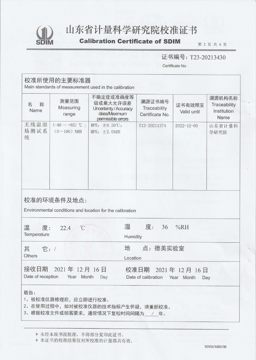 上一條:安徽晶科能源有限公司-溫濕度檢定箱下一條:高精度數(shù)字溫度計-校準證書
