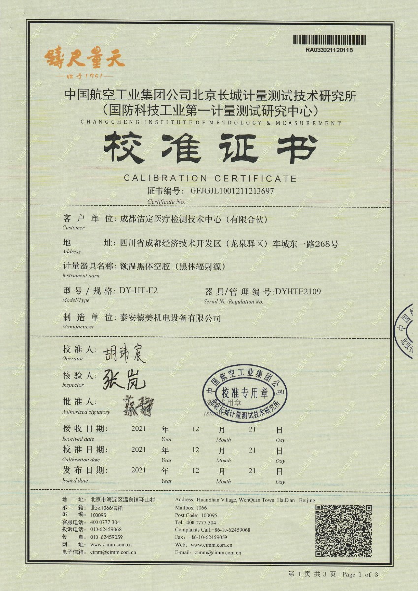 成都潔定醫(yī)療檢測技術-額溫黑體空腔 2022-1-4 本文被閱讀 12578 次