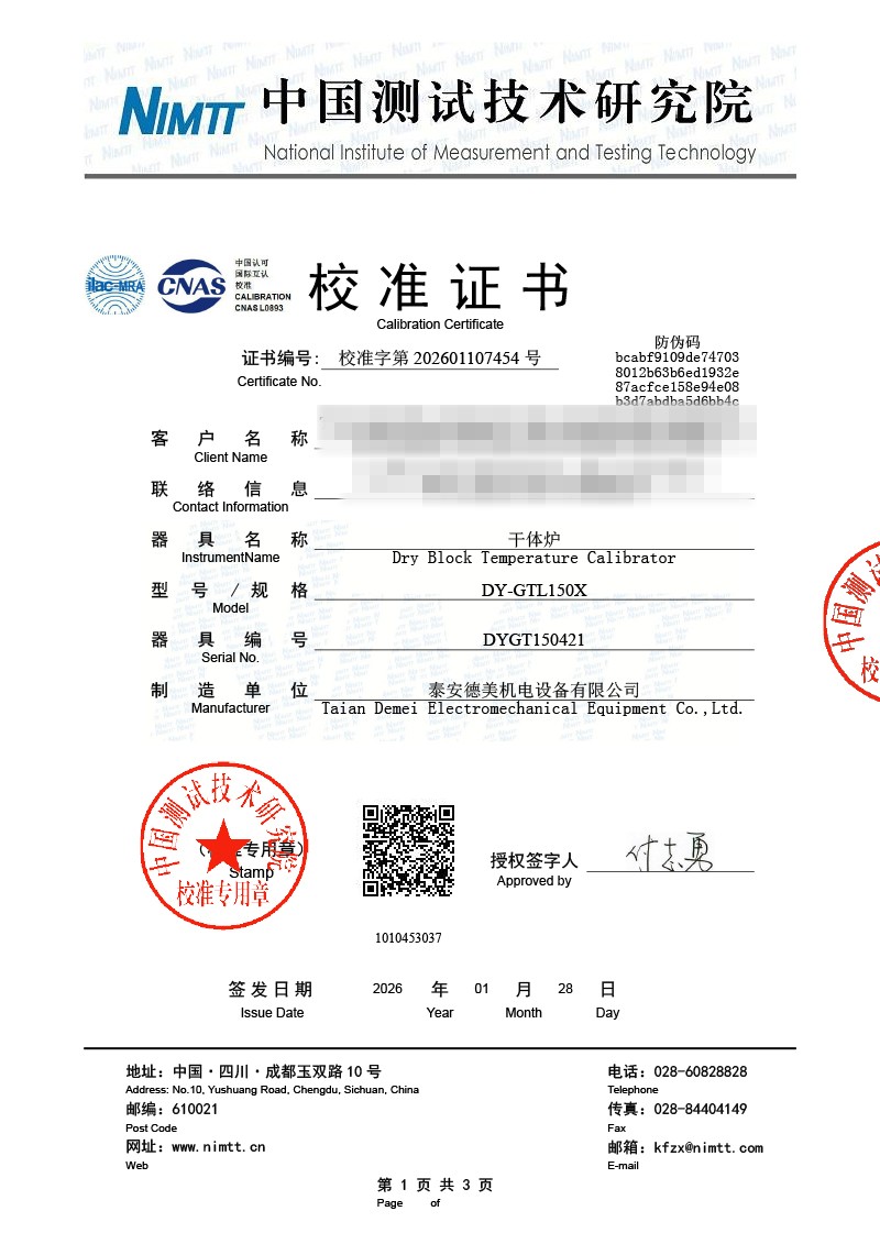 低溫干體爐-校準證書 2026-1-29 本文被閱讀 1662 次