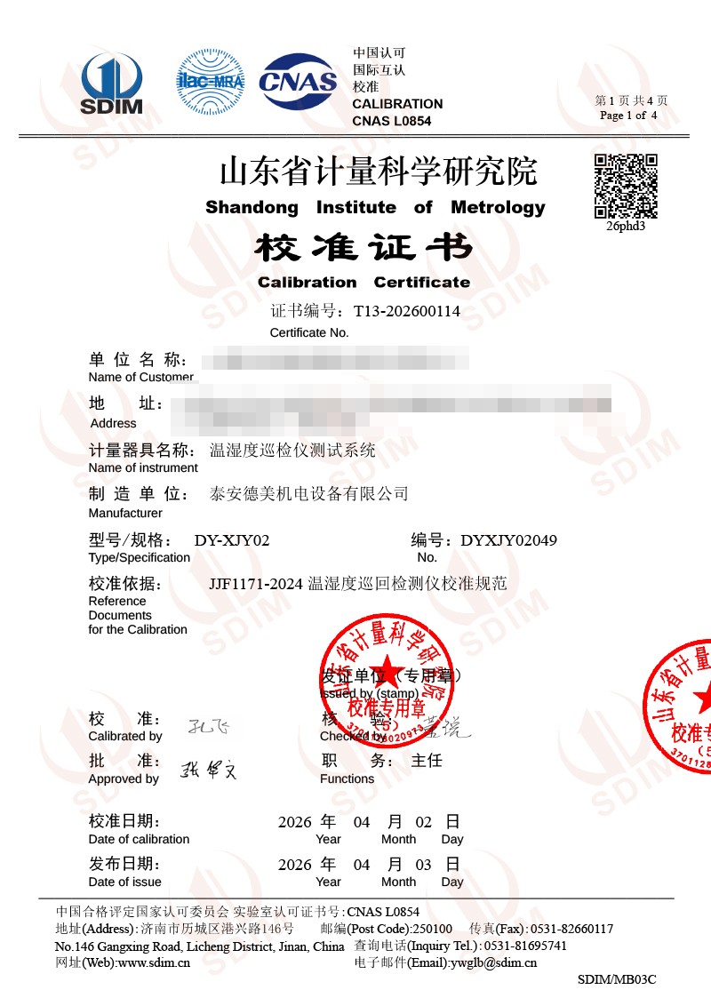 | 上一條:低溫智能干體爐(電測(cè)款)校準(zhǔn)證書 | 下一條:高精度數(shù)字溫度計(jì)-校準(zhǔn)證書 |