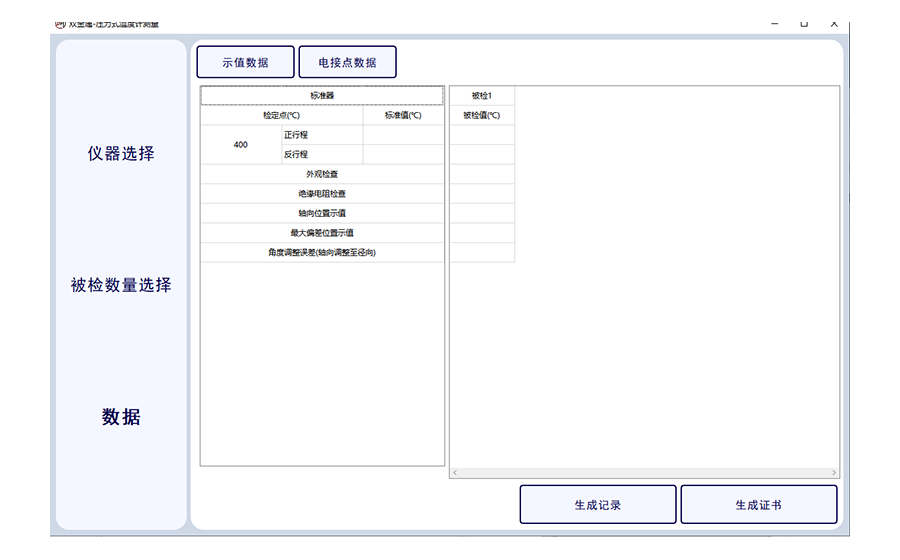 3.軟件可通過被測傳感器數(shù)據(jù),實現(xiàn)數(shù)據(jù)的記錄與證書生成