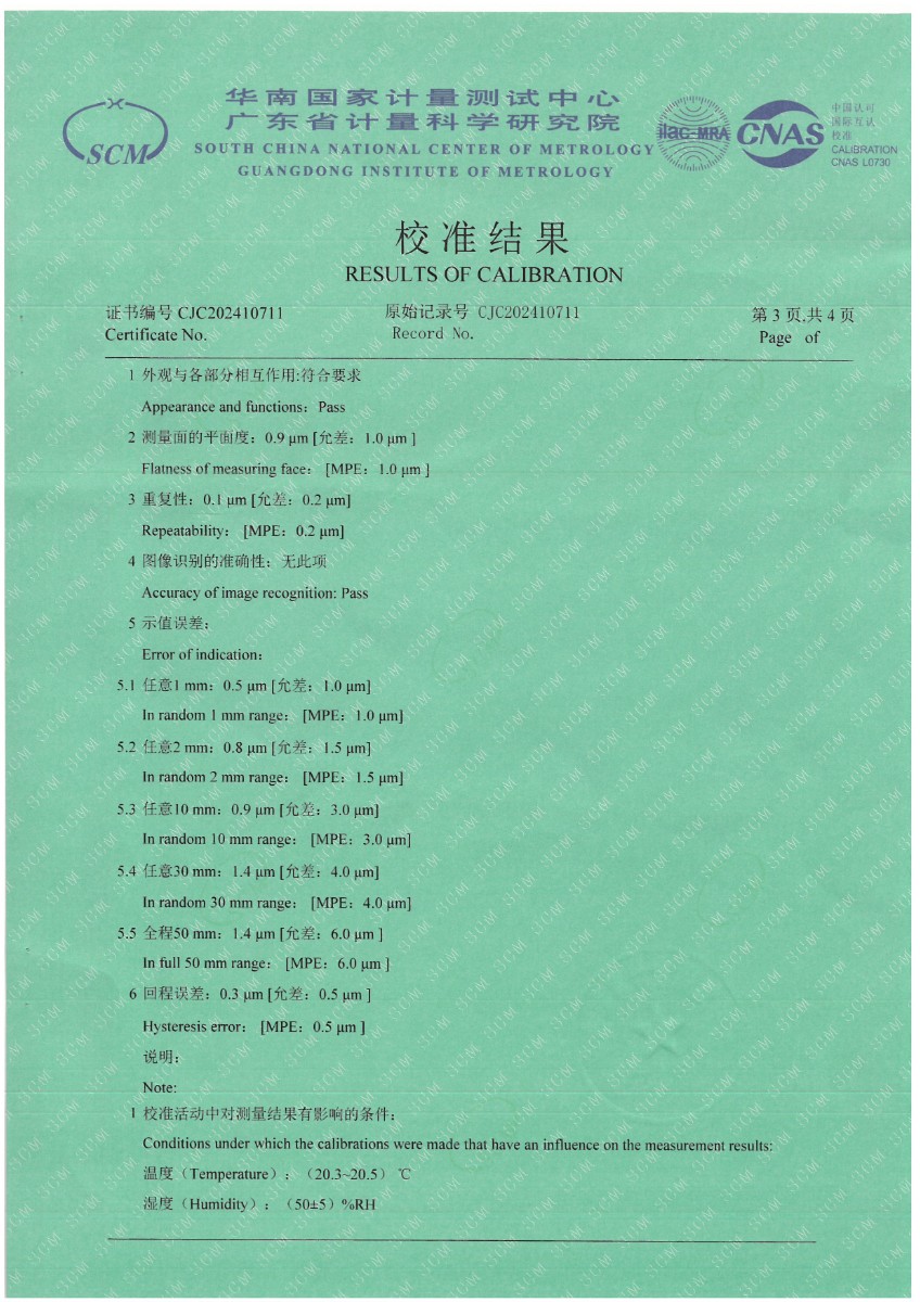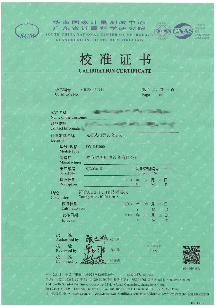 光柵式指示表檢定儀校準證書 2024-8-22 本文被閱讀 8258 次