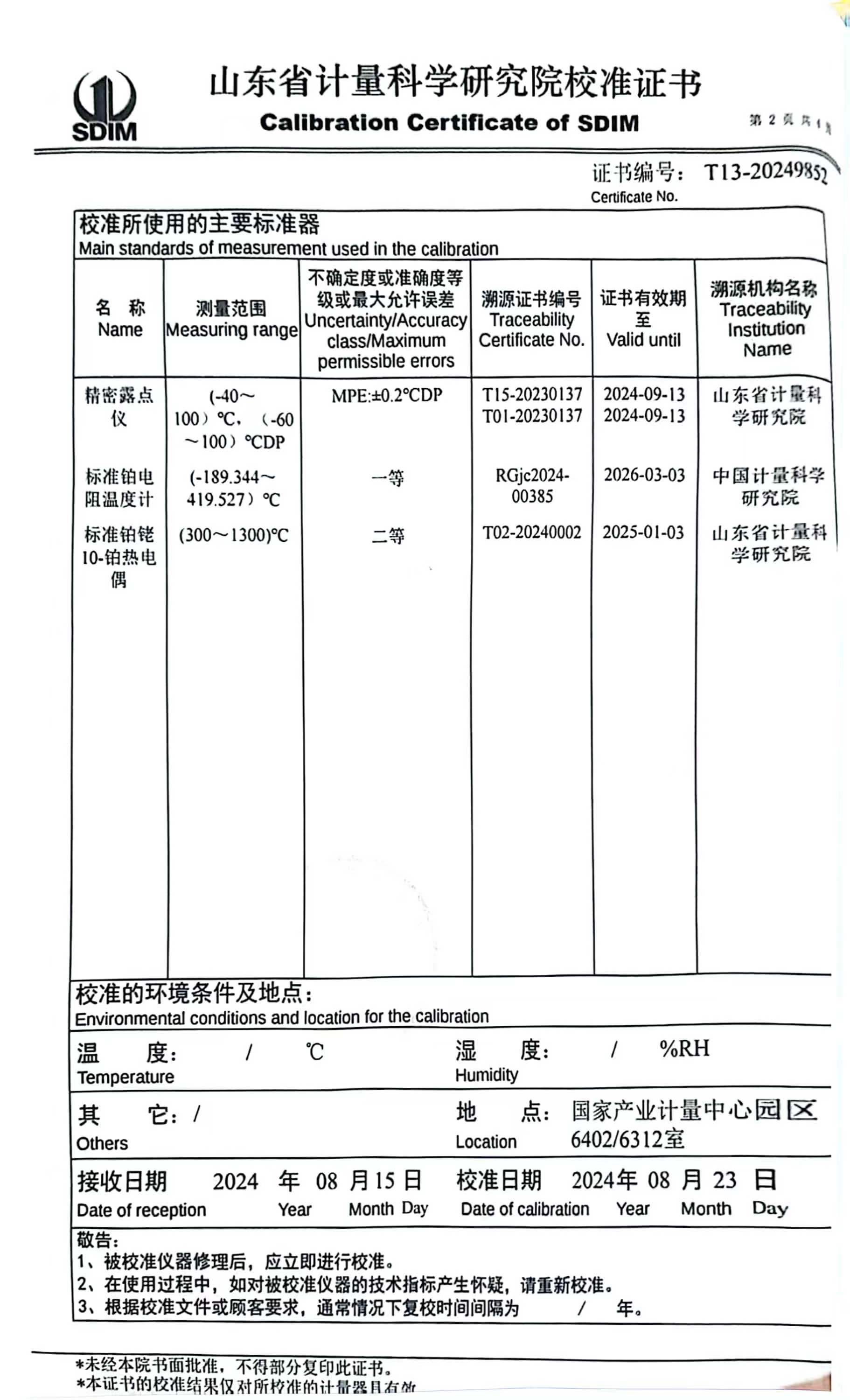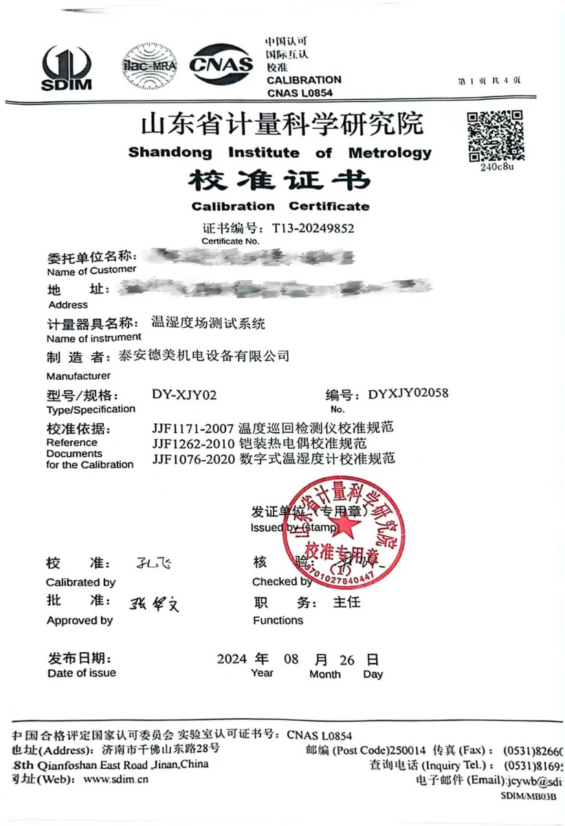 溫濕度場測試系統(tǒng)校準證書 2024-8-29 本文被閱讀 8404 次