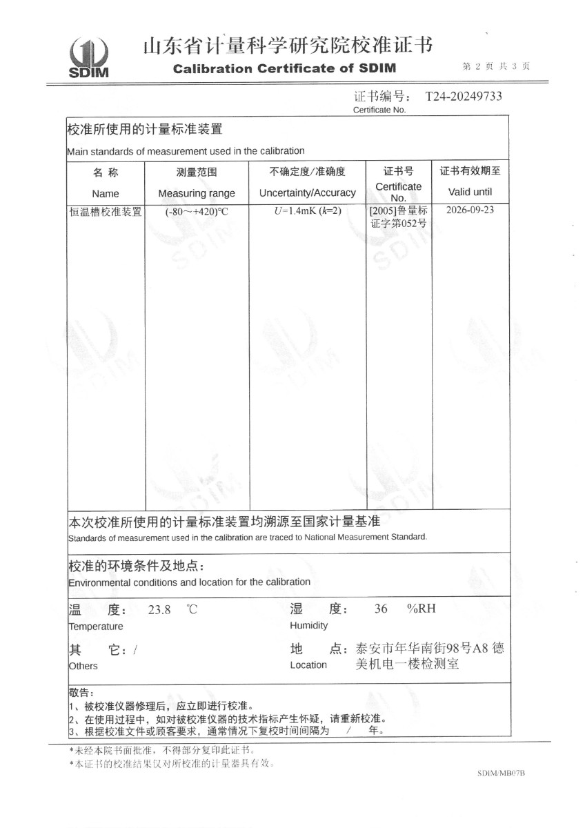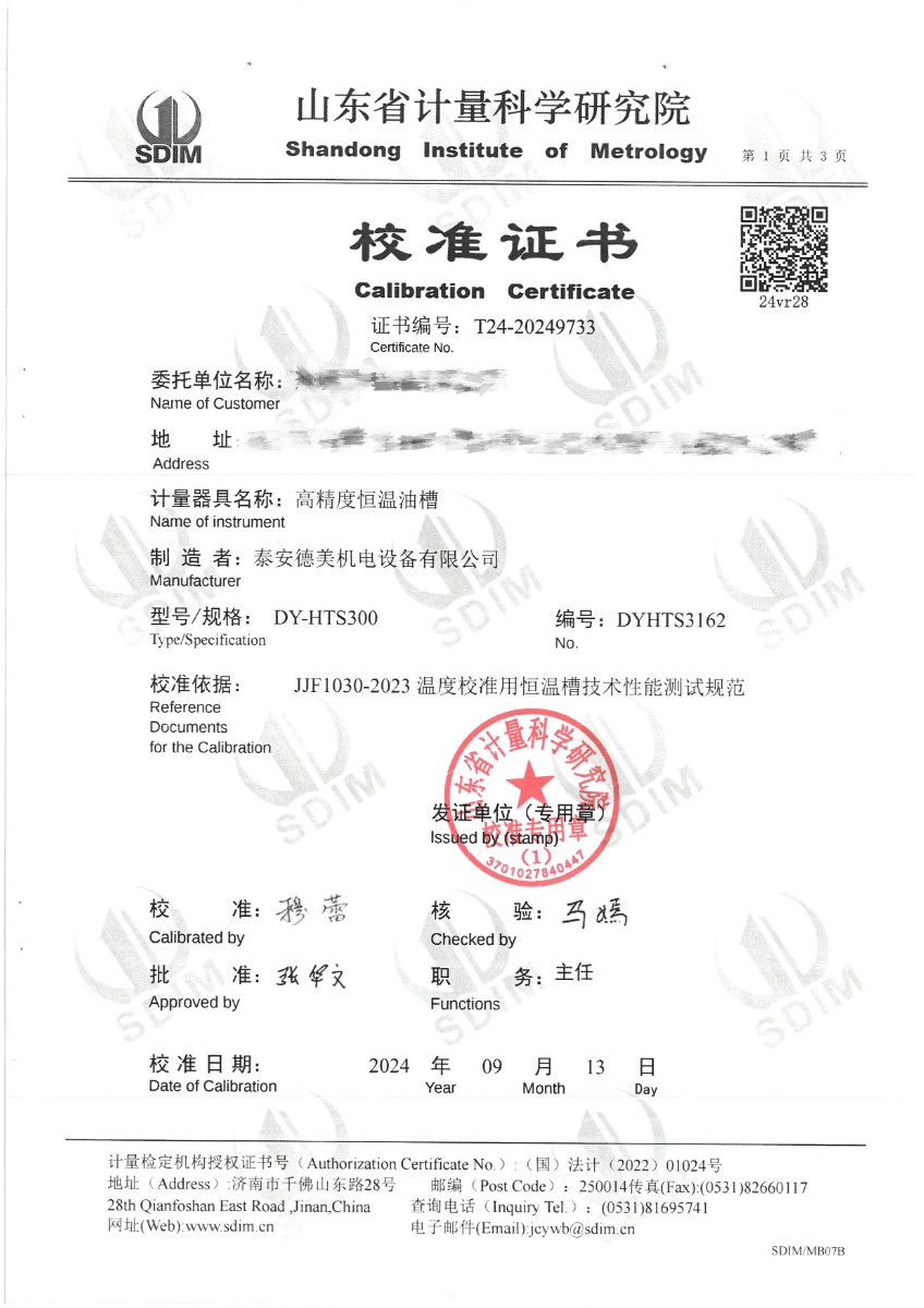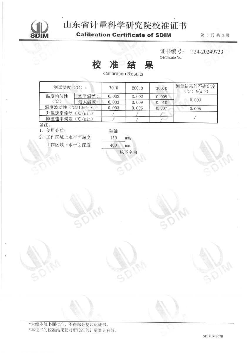 高精度恒溫油槽(70~300)℃校準證書 2024-9-25 本文被閱讀 8255 次