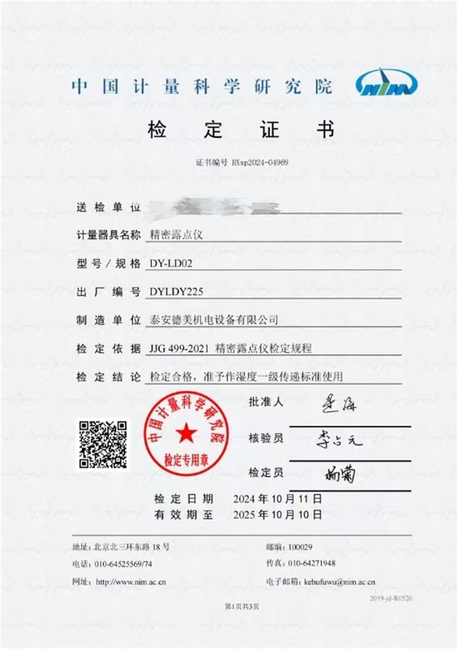 露點(diǎn)儀檢定證書 2024-11-6 本文被閱讀 7469 次