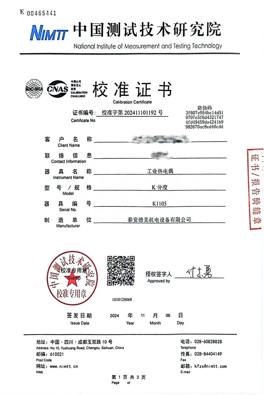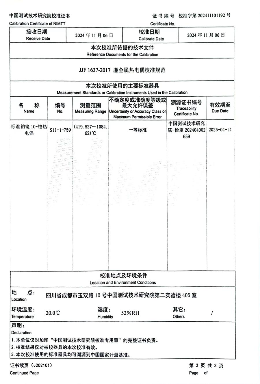 K分度熱電偶校準(zhǔn)證書 2024-11-9 本文被閱讀 8300 次