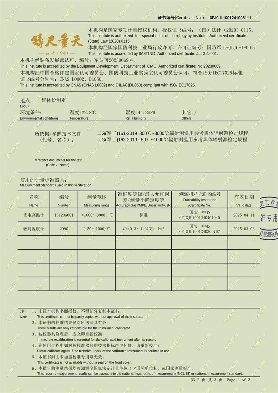 高溫黑體爐(800-1700℃)校準(zhǔn)證書 2024-11-15 本文被閱讀 8267 次