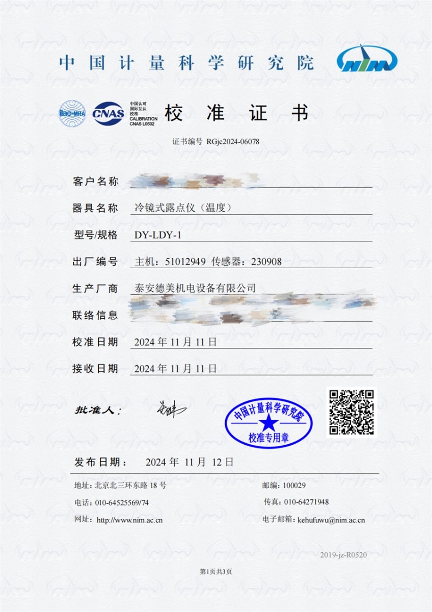 冷鏡式露點儀校準證書 2024-11-21 本文被閱讀 8510 次