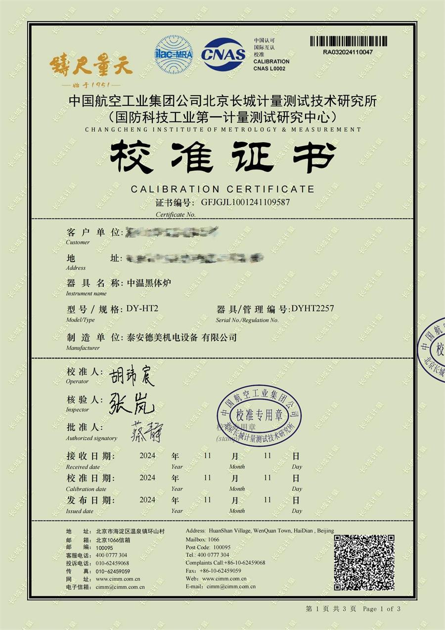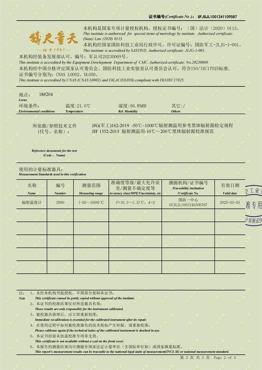 中溫干體爐(50-700℃)校準證書 2024-11-27 本文被閱讀 8929 次