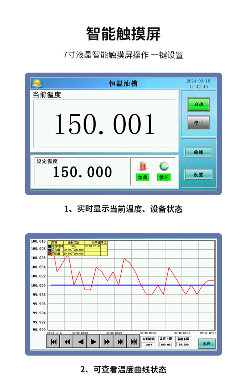 3.7寸液晶智能觸摸屏操作,檢測(cè)數(shù)值一鍵設(shè)置,一鍵啟停,直觀簡(jiǎn)單
