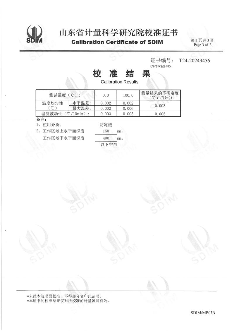 制冷恒溫槽(0~100℃)校準證書 2024-12-26 本文被閱讀 7461 次