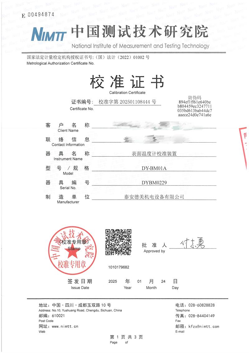 表面溫度計(jì)校準(zhǔn)裝置-校準(zhǔn)證書 2025-2-14 本文被閱讀 6683 次