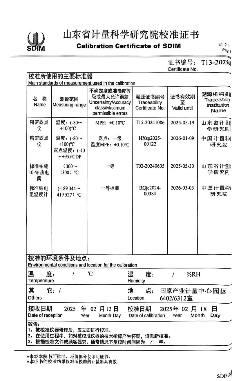 | 上一條:表面溫度計(jì)校準(zhǔn)裝置-校準(zhǔn)證書(shū) | 下一條:濕度發(fā)生器-校準(zhǔn)證書(shū) |