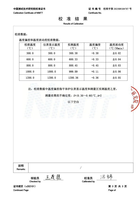 | 上一條:黑體輻射源(50-1200℃)校準(zhǔn)證書 | 下一條:濕度發(fā)生器-校準(zhǔn)證書 |