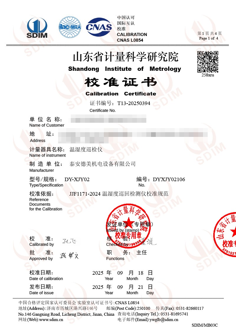 溫濕度巡檢儀校準(zhǔn)證書 2025-9-23 本文被閱讀 2630 次