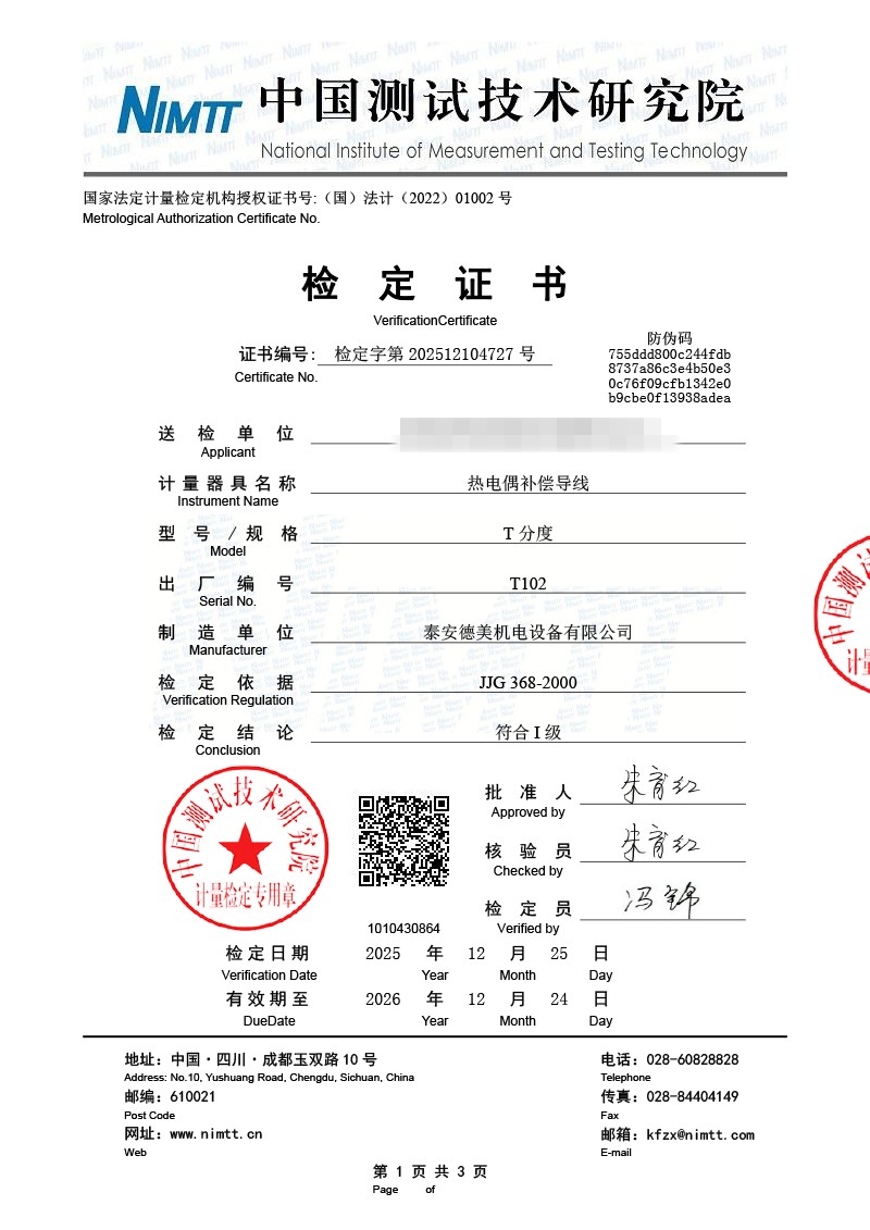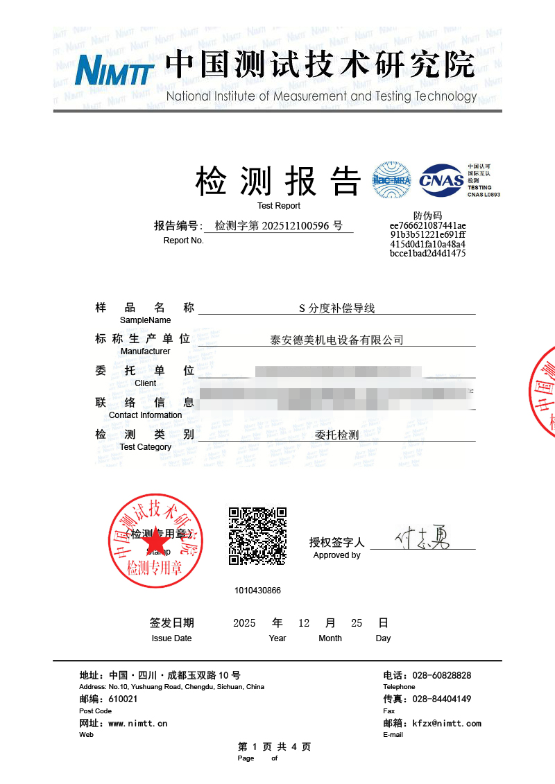 補償導線檢測、檢定、校準報告 2026-1-4 本文被閱讀 1720 次