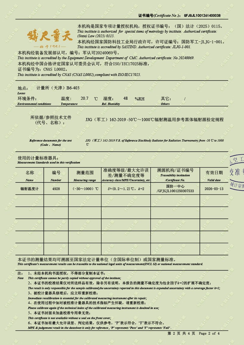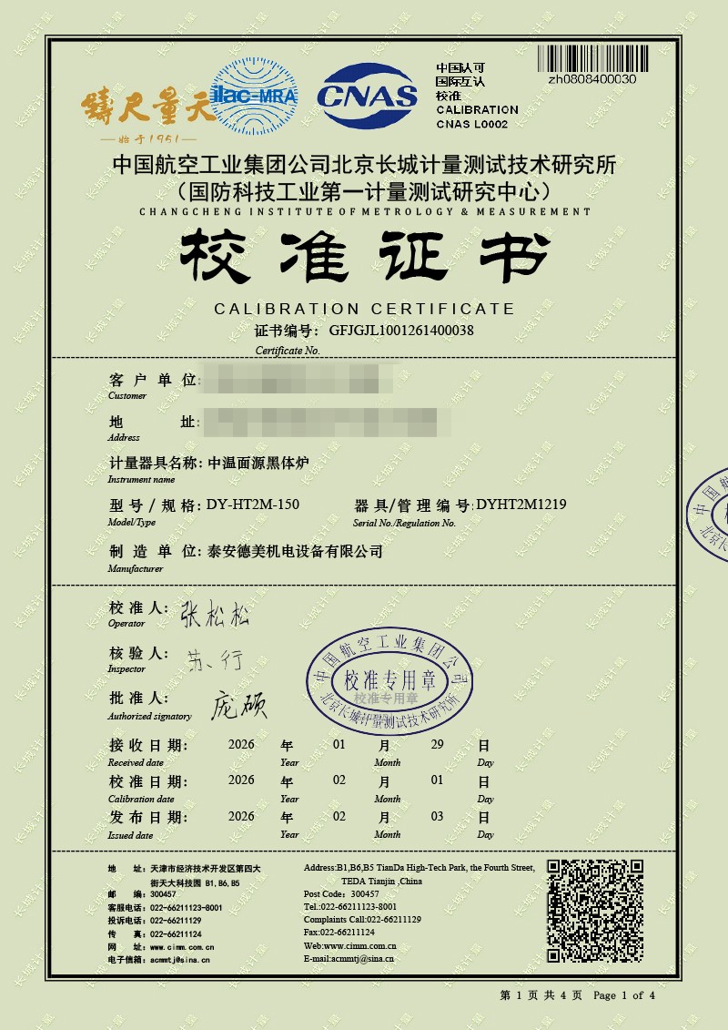中溫面源黑體爐-校準(zhǔn)證書 2026-2-11 本文被閱讀 823 次