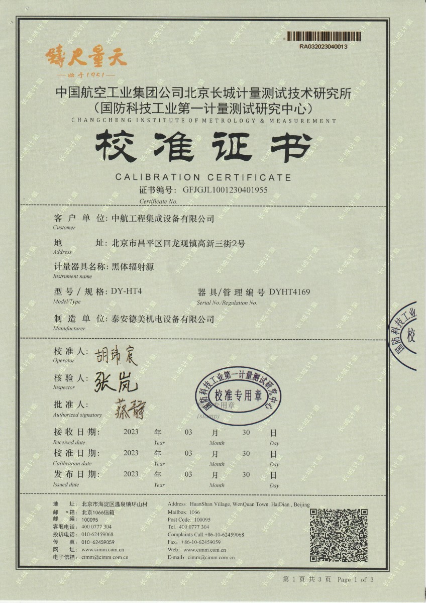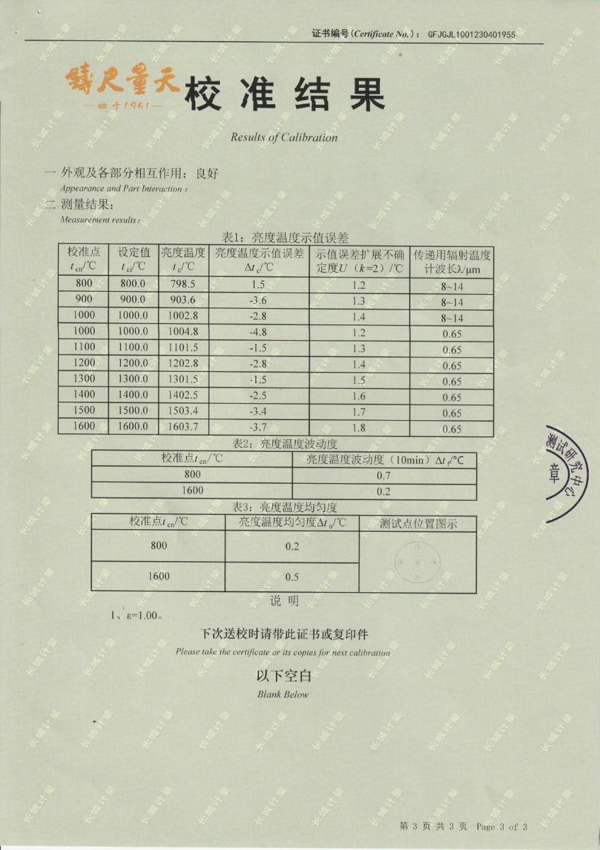 | 上一條:浙江弘志計(jì)量測(cè)試有限公司 黑體輻射源 校準(zhǔn)證書(shū) | 下一條:高精度數(shù)字溫度計(jì)-校準(zhǔn)證書(shū) |