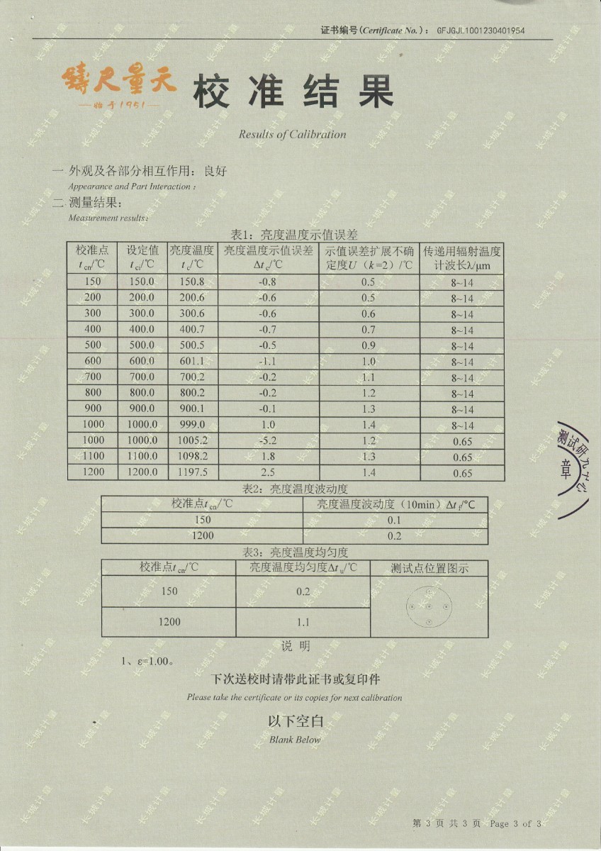 中航工程集成設(shè)備有限公司 黑體輻射源 校準(zhǔn)證書 (2)