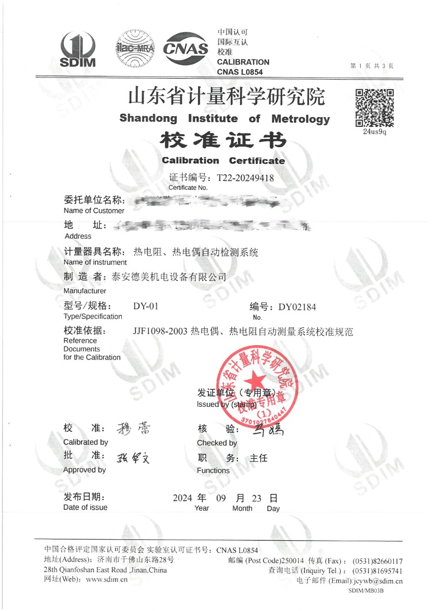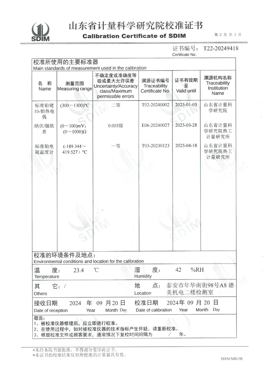 | 上一條:貴金屬熱電偶檢定爐(800~1600℃)校準(zhǔn)證書 | 下一條:高精度數(shù)字溫度計(jì)-校準(zhǔn)證書 |