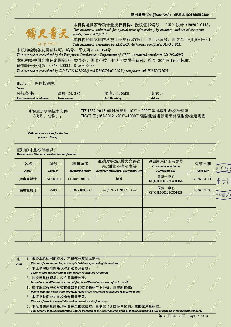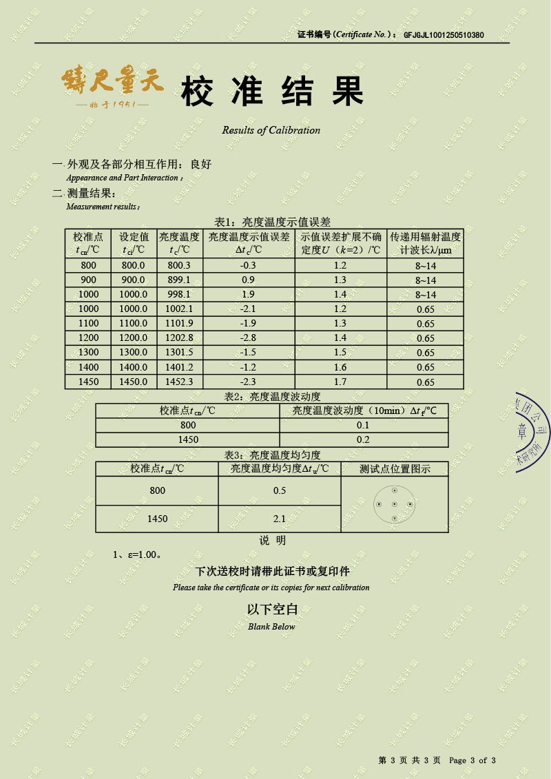 腔式黑體輻射源(800-1450℃)校準(zhǔn)證書(shū) 2025-5-28 本文被閱讀 4696 次