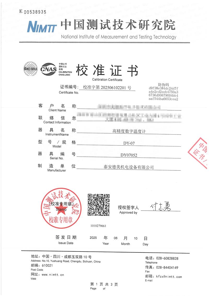 | 上一條:溫濕度檢定箱(-5-65℃)校準(zhǔn)證書(shū) | 下一條:高精度數(shù)字溫度計(jì)-校準(zhǔn)證書(shū) |