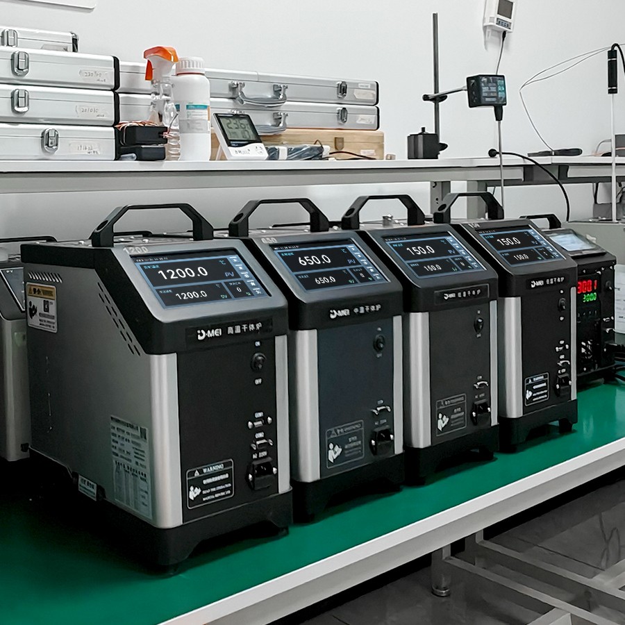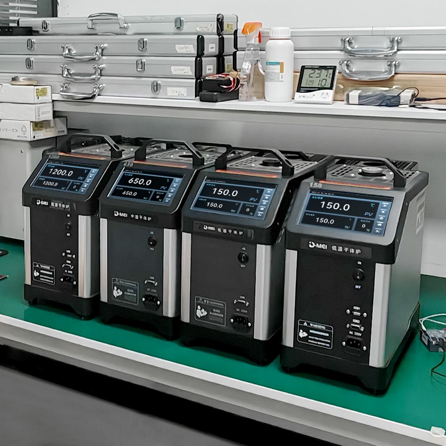 干體爐能夠提供一個(gè)穩(wěn) 定的、均勻的、準(zhǔn)確的溫度環(huán)境(溫場(chǎng)),提供了類似于恒溫槽(液浴槽)的性能,但是干體爐卻攜帶方便,不需要放置液體。干體爐到達(dá)預(yù)定溫度點(diǎn)并且溫度穩(wěn) 定的時(shí)間比恒溫槽快5到10倍,這樣可以大大節(jié)省校準(zhǔn)人員的時(shí)間,提高溫度檢定速度。干體爐的便攜性使其能夠到現(xiàn)場(chǎng)進(jìn)行校準(zhǔn)工作,從而解決了恒溫槽在運(yùn)輸移動(dòng)上的困難。 通過(guò)干體爐可以方便地校準(zhǔn)溫度傳感器、水銀溫度計(jì)、膨脹式溫度計(jì)、熱電偶、熱電阻、等溫度傳感器。