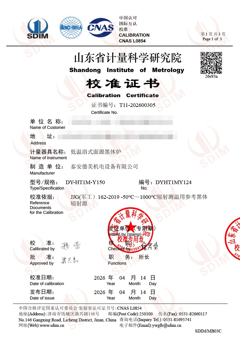 低溫浴式面源黑體爐-校準(zhǔn)證書 2026-4-20 本文被閱讀 337 次