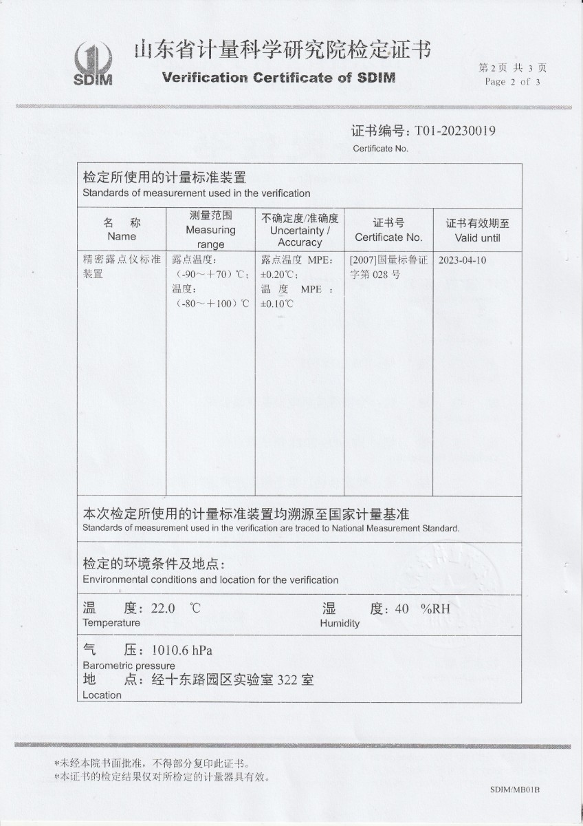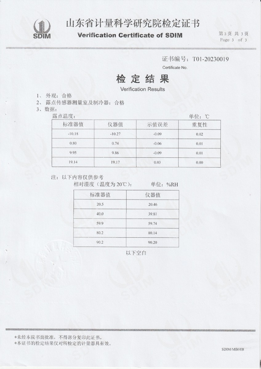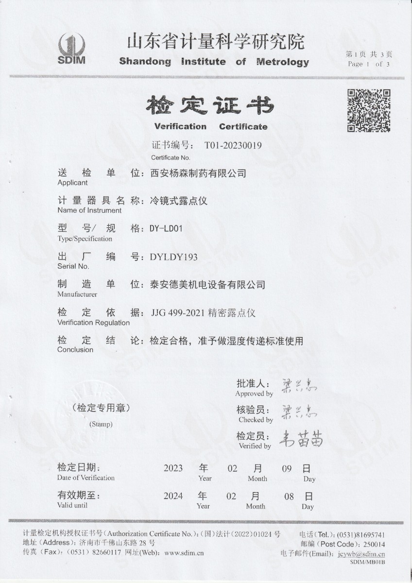 西安楊森制藥有限公司 冷鏡式露點儀 檢定證書 2023-2-25 本文被閱讀 12241 次