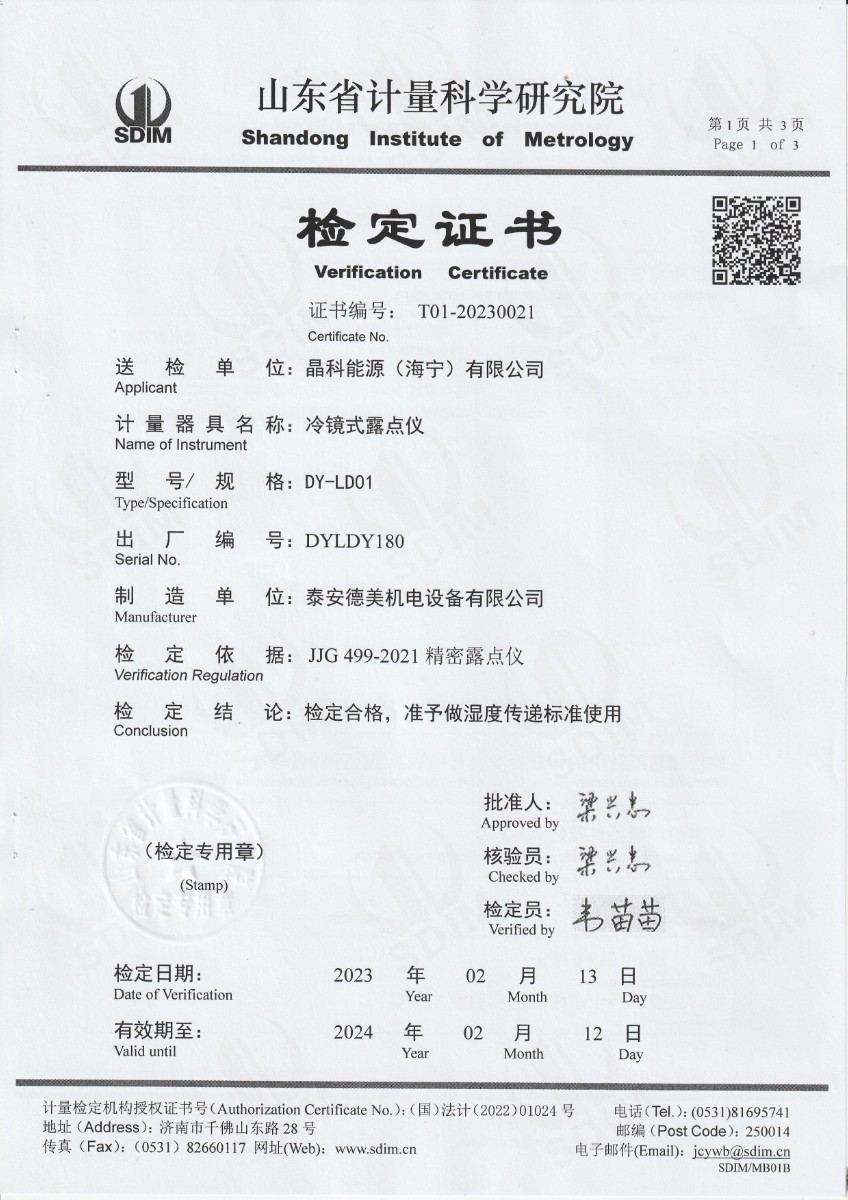 | 上一條:西安楊森制藥有限公司 冷鏡式露點(diǎn)儀(溫度) 校準(zhǔn)證書 | 下一條:高精度數(shù)字溫度計(jì)-校準(zhǔn)證書 |