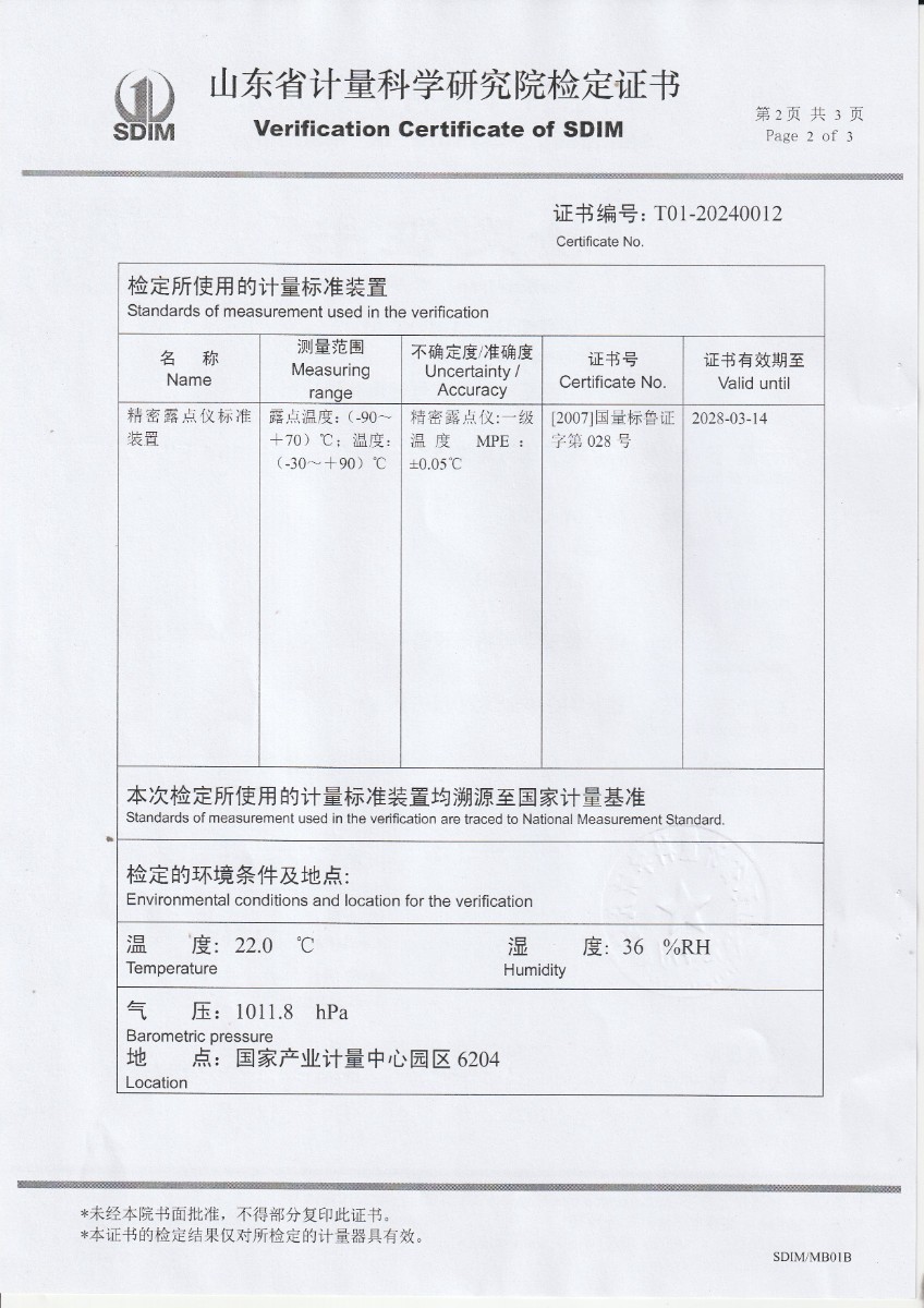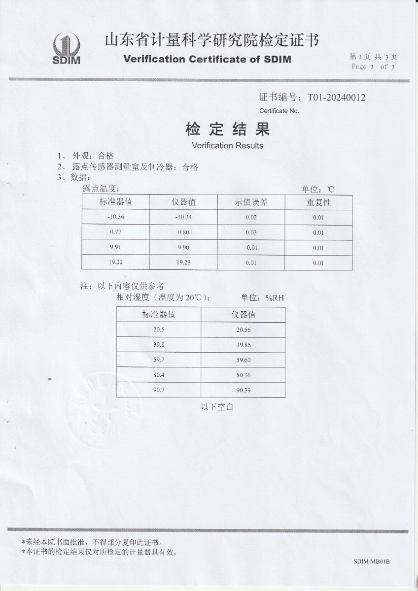 冷鏡式露點儀檢定證書 2024-1-31 本文被閱讀 10507 次