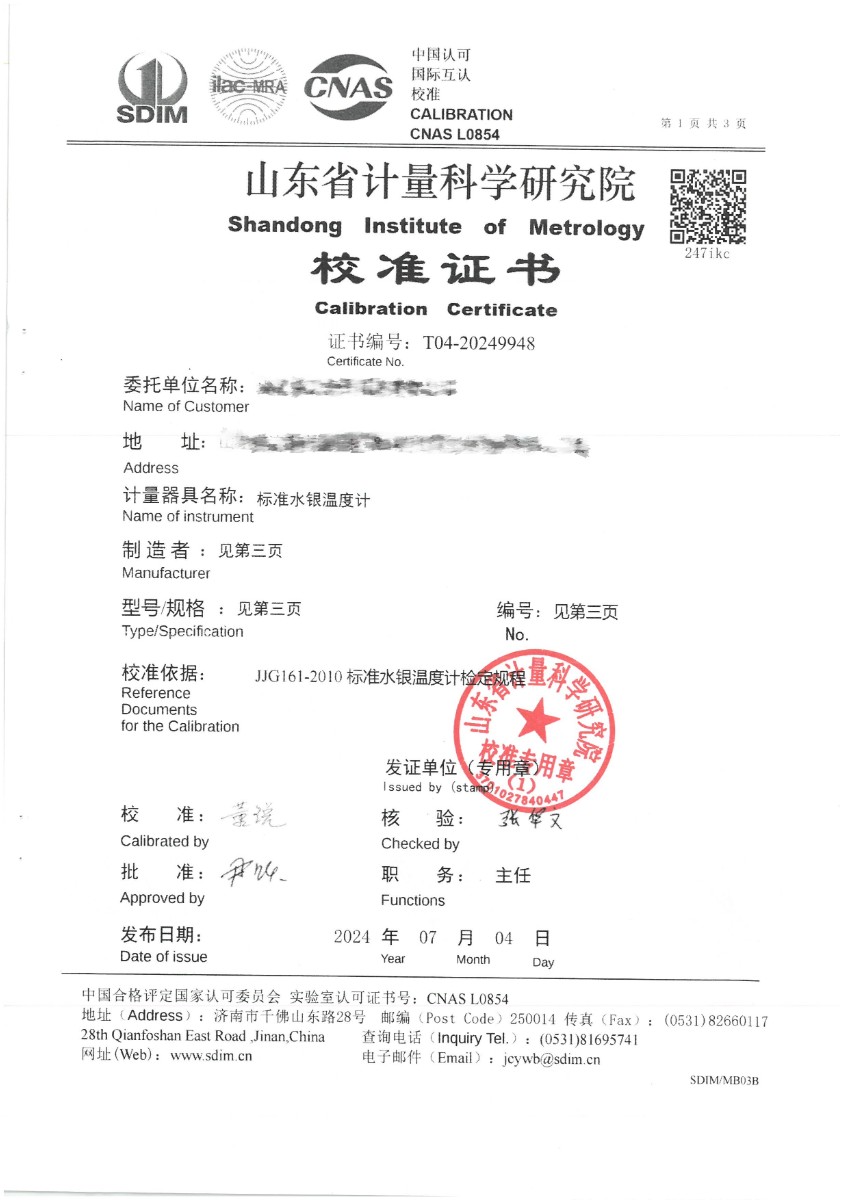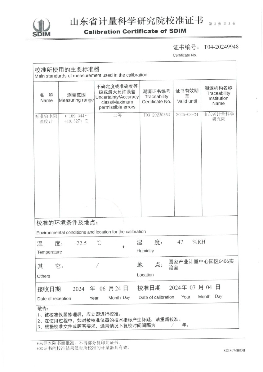 | 上一條:溫濕度檢定箱(-20~70℃)校準(zhǔn)證書 | 下一條:高精度數(shù)字溫度計-校準(zhǔn)證書 |