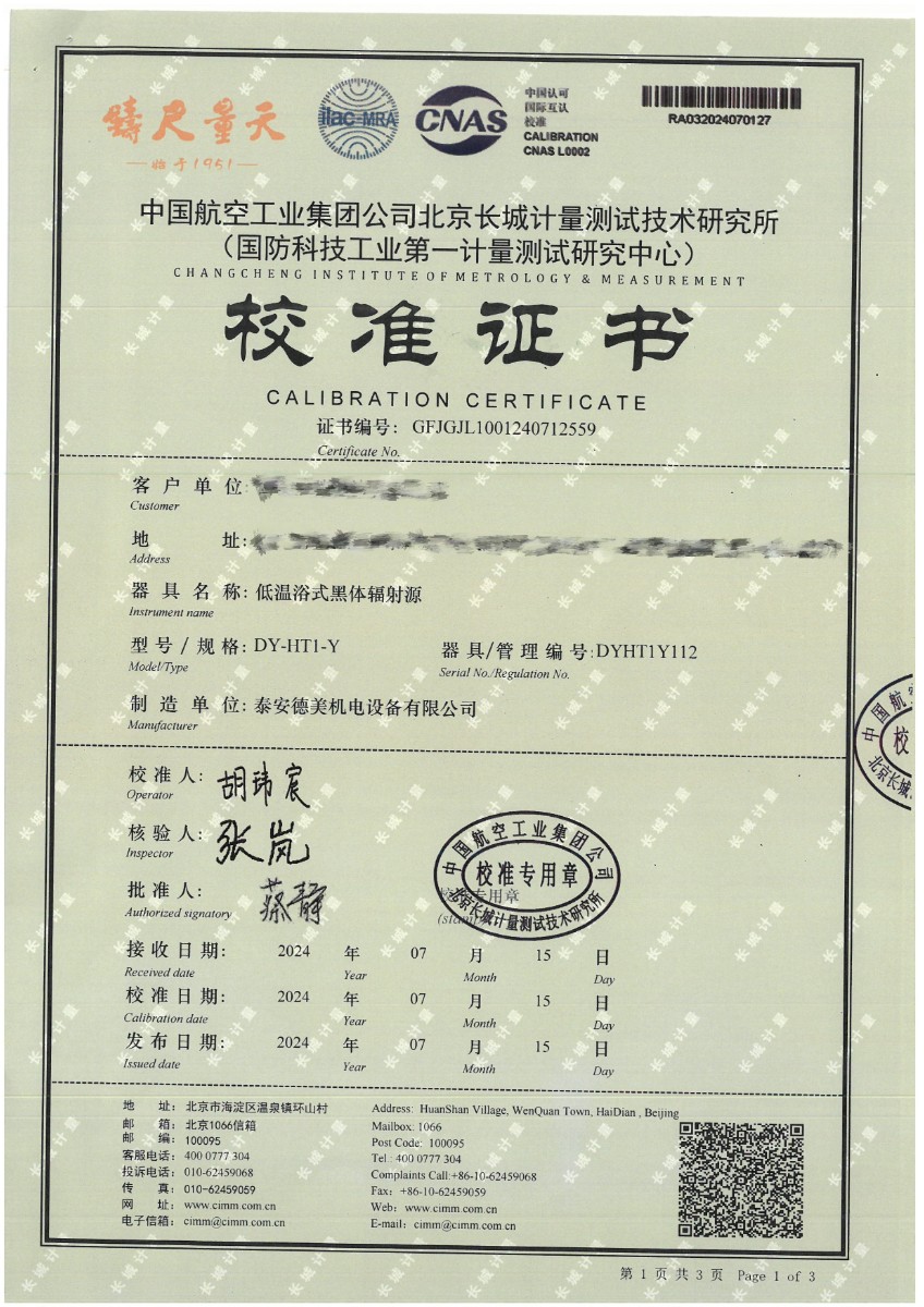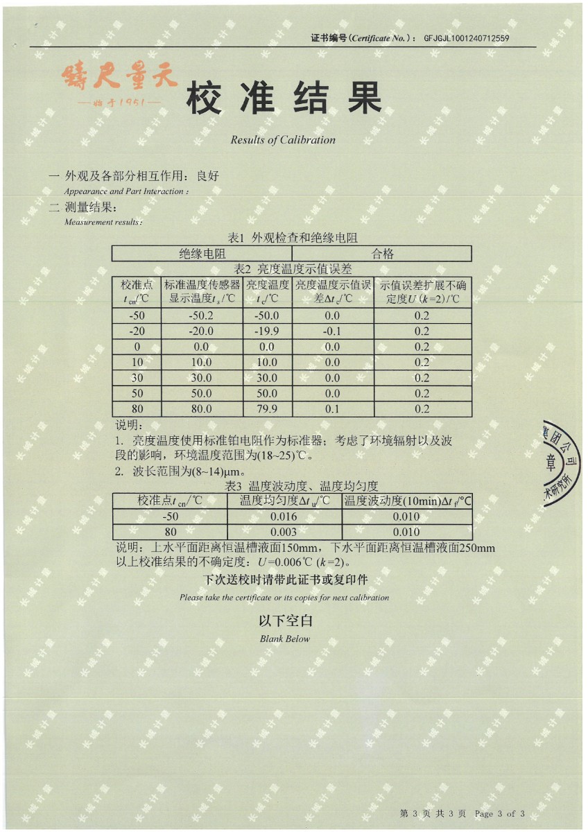 | 上一條:標(biāo)準(zhǔn)水銀溫度計校準(zhǔn)證書 | 下一條:高精度數(shù)字溫度計-校準(zhǔn)證書 |