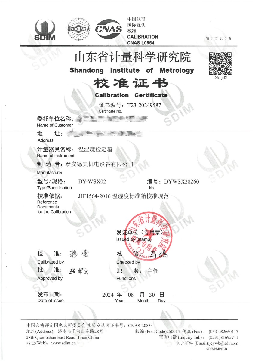 | 上一條:高精度恒溫槽(-80~100℃)校準(zhǔn)證書 | 下一條:高精度數(shù)字溫度計(jì)-校準(zhǔn)證書 |