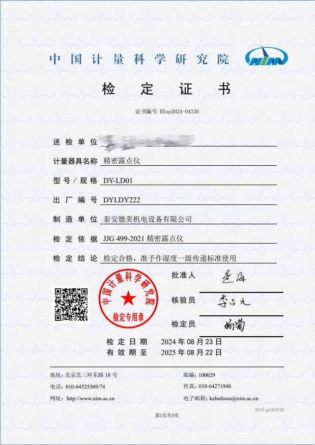 露點(diǎn)儀檢定證書 2024-9-3 本文被閱讀 7338 次