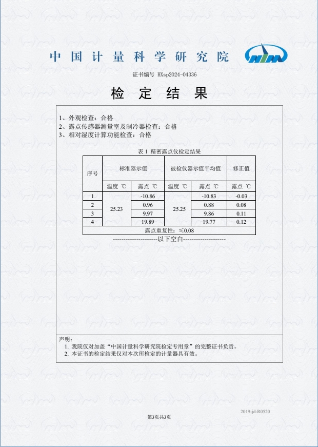 露點(diǎn)儀檢定證書